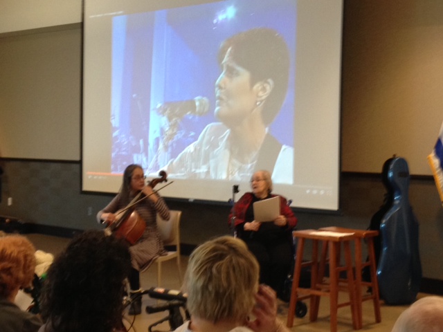 We were first, but before that was the best millennial part. Thanks to technology, I was able to get Aunt Freda up on FaceTime and she got to see the 200 people who’d showed up. I introduced her to the rabbis and cantors, showed her the display table and then shoved the microphone up to my i-pad. She thanked everyone for coming, and heard the audible gasp of disbelief when she said that Debbie was so afraid that no one would remember her music.