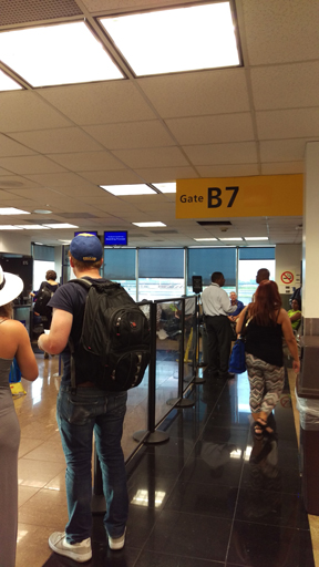 There was a line and Tyler was working it as quickly as he could, but I had no idea whether I’d be on the plane or not. The man in front of me in line responded to my query as to whether I knew what was up by telling me in a snotty tone, “I’m in line.”